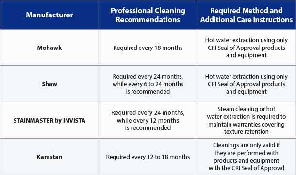 YOU CAN TRUST THE PROfESSIONALS In addition to unbeatable selection and value, All warranties require professional carpet cleaning once per year . the customer must have the receipt of purchase. ... Retrieve Doc